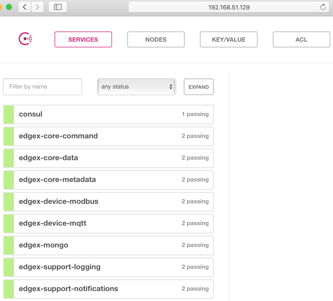 After the services start, check the consul dashboard as follows: